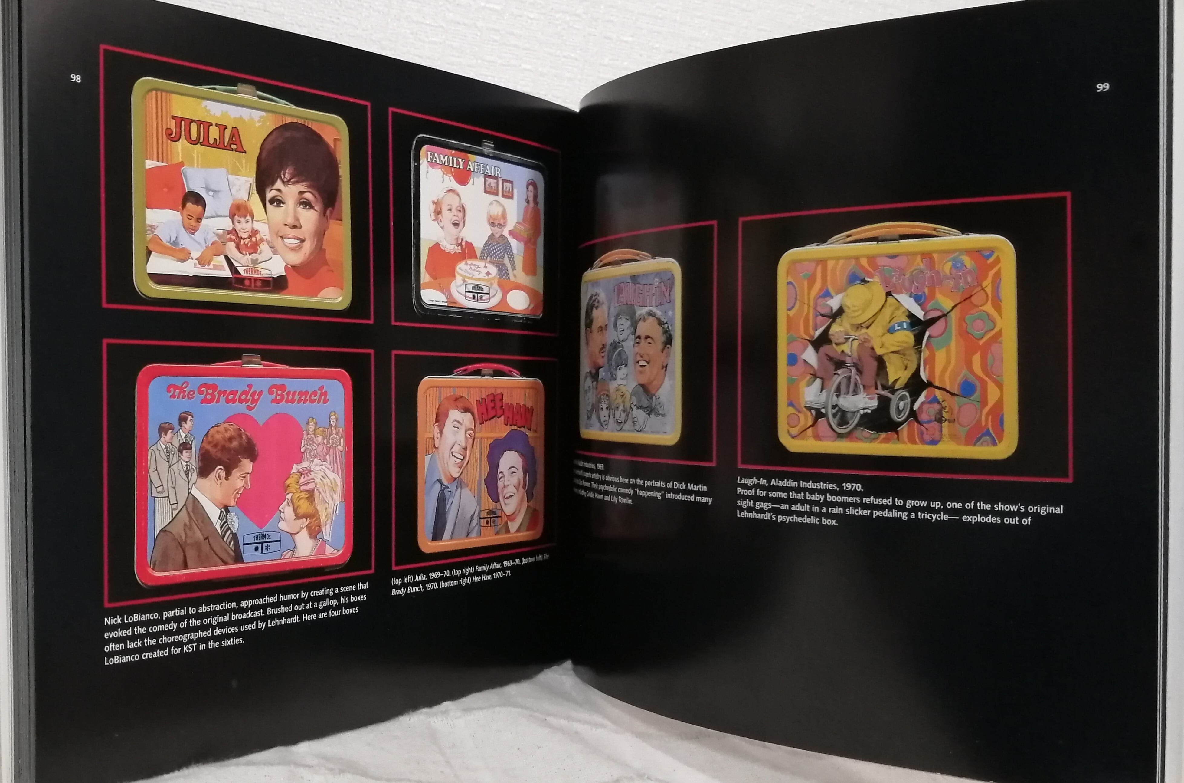 1950年から60年代にかけての子供用のお弁当箱。ローン・レンジャー、バービーやビートルズ、スタートレックやバットマン、ポパイなど、テレビドラマやアニメーションなど時代を反映したランチボックスの数々をオールカラーで。巻末には希少度とメーカーなどを記した表を付記