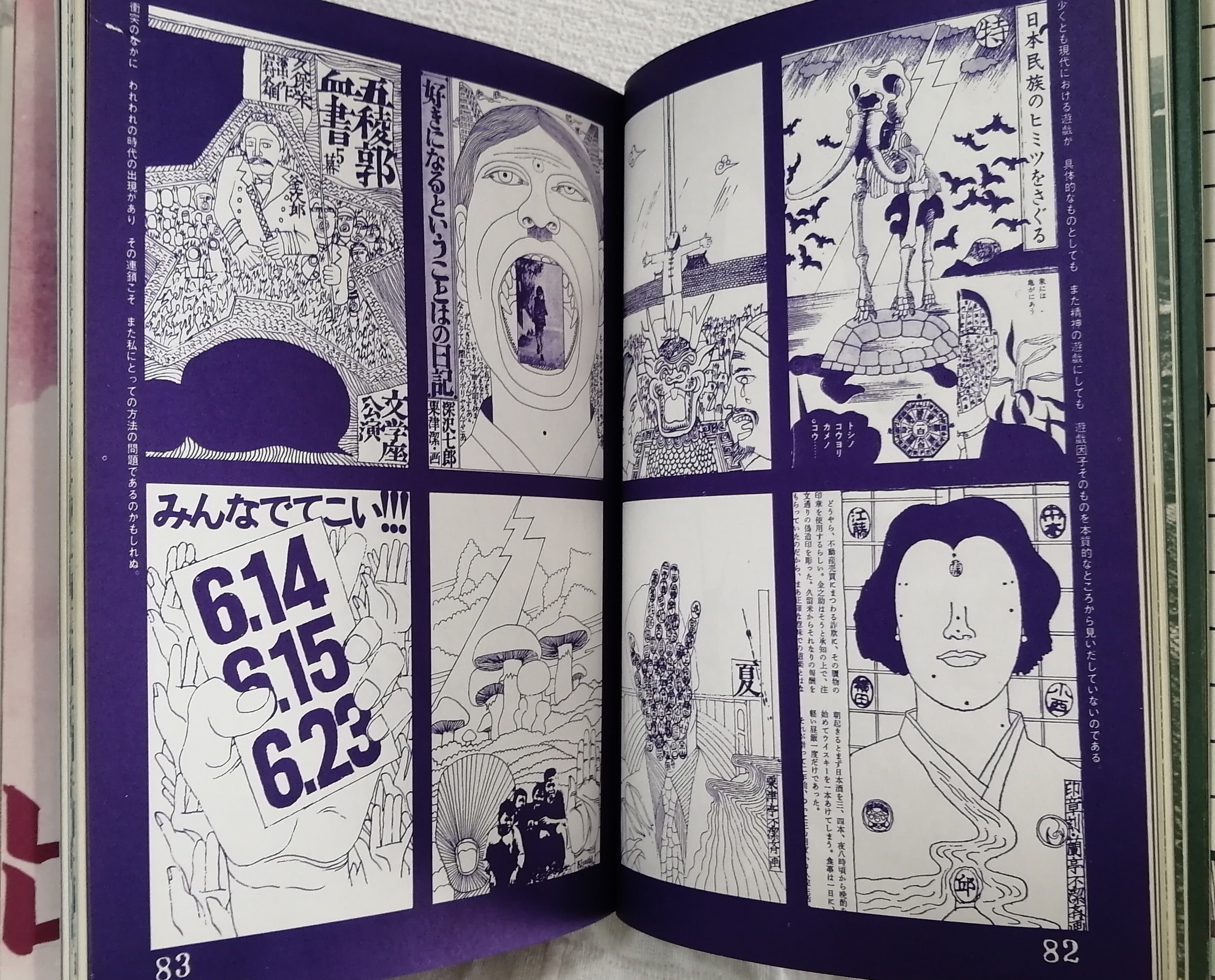 デザイン、イラストレーション、漫画にスケッチなど、1960年代のエッセンスをスクラップブック的にまとめられており、また随所に寄せられる著者自らのエッセイなども。デザインの再構築を目指す粟津潔の若き日の曼荼羅の世界。